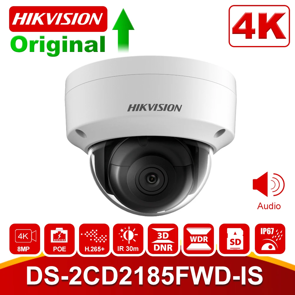 In Stock Hikvision 8MP POE IP Camera DS-2CD2185FWD-IS Outdoor 4K Security Dome Camera H.265 Built-in Audio Interface SD clot