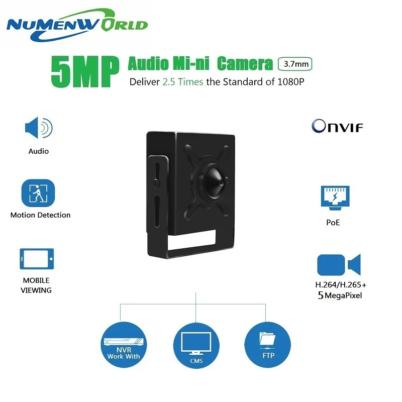 New arrival Numenworld IP camera 5.0MP POE HD webcam Mini CCTV Video Audio camera ONVIF P2P RTSP Surveillance C